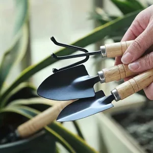 I’m new to houseplants, and this small set has helped a lot. The iron ends feel solid, and the wood handles sit nicely in my hands.