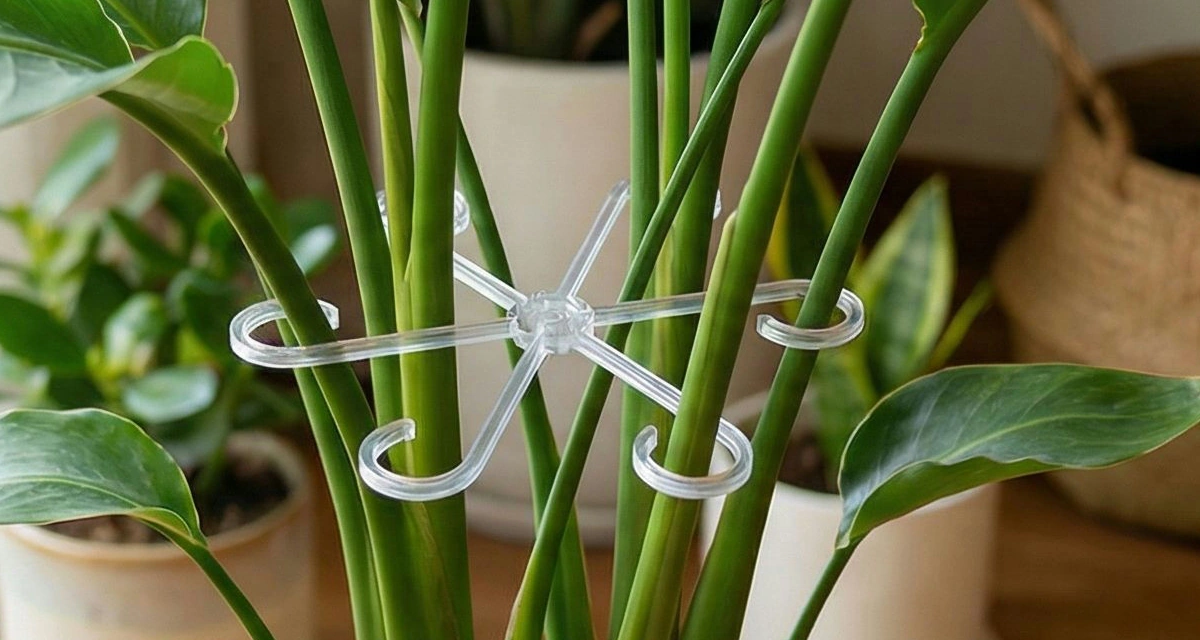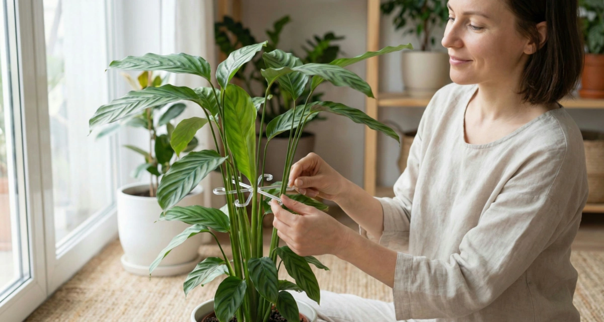 My peace lily kept bending toward the window. With this support, the leaves stay upright, the pot looks neater, and watering is less messy.