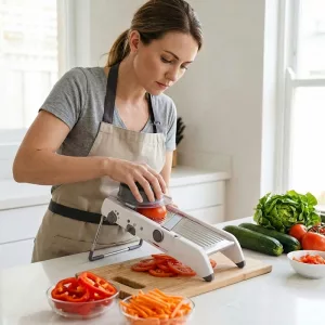 As a busy nurse, I need fast dinners. This mandoline lets me slice a full tray of veggies for roasting in minutes, all with the same thickness so they cook evenly.