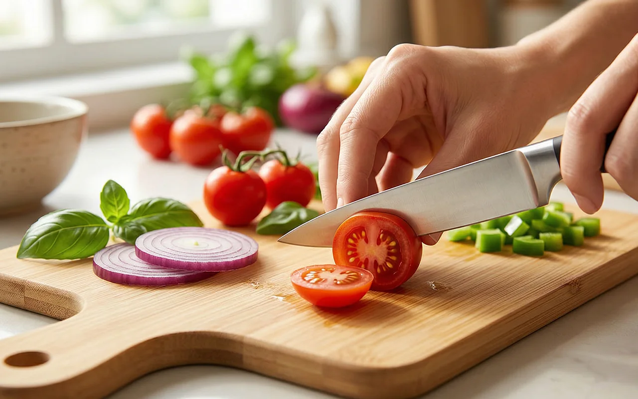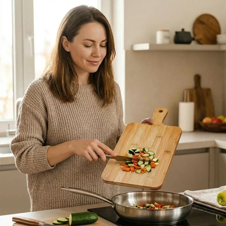 Cooking feels simpler because ingredients stay organised on the Nygex board. The handy handle helps transfer sliced food straight to pans neatly.