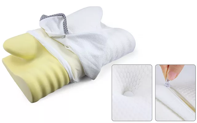 Experience a restful night's sleep with the Nygex contoured pillow. Designed to provide optimal support, our pillow alleviates neck stiffness by aligning your upper spine orthopedically. Its memory foam core molds to your neck and head, ensuring a personalized fit. Whether you prefer sleeping on your side or back, this pillow is tailored to meet your specific needs.
