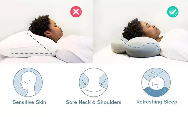 Our cloud-shaped pillow provides optimal support for your head, neck, and shoulders. This alignment keeps your upper spine in a neutral position. It helps to mitigate muscle stiffness in the collar region.