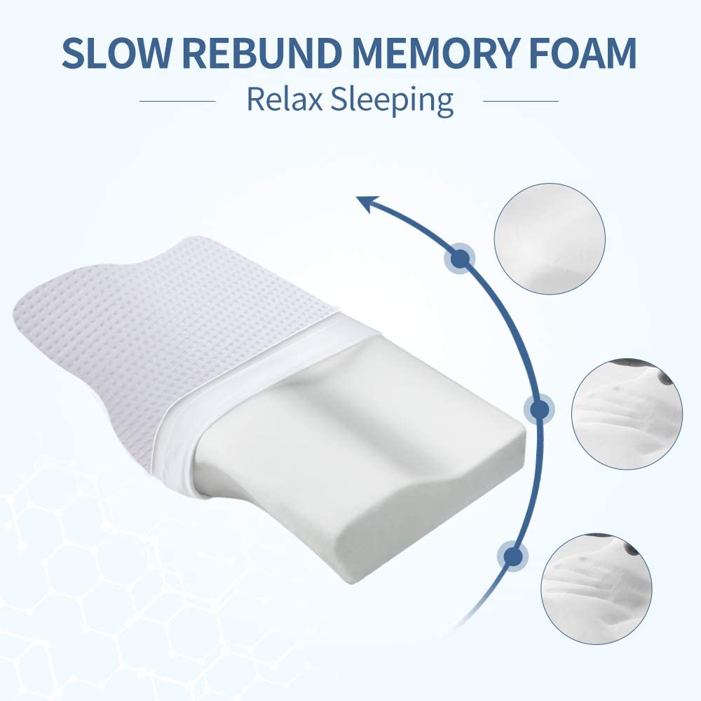 The pillow is professionally designed and sculpted with 100% pure memory foam. It perfectly supports your neck, head, and the natural curve of your cervical spine as you rest. A wavy design holds the contour of your head and neck. It helps distribute weight evenly, relieving pressure and helping with neck and back pain. A memory foam pillow may also be a benefit to those with sleeping problems as there is less tossing and turning. It leads to sound, restful sleep.