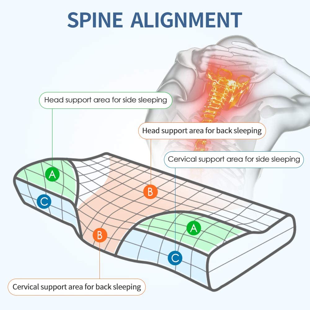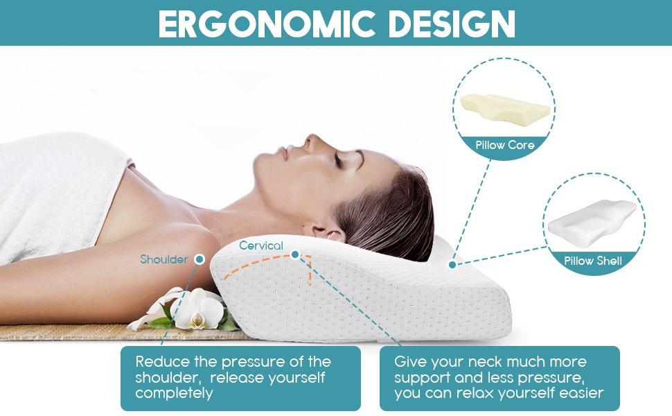 ✔️ COMBATS NECK, SHOULDER & BACK PAIN — Follows the natural curve of your head and neck to keep them aligned with your spine properly. It helps to reduce chronic neck pain and soreness. The contour shape relieves the discomfort of shoulder and back, and lets you regain vitality during sleep.