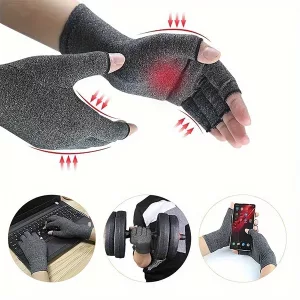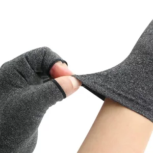These gloves are amazing! Wearing them, my hands feel much better. The compression is comfy, and the fingerless style lets me type and write easily. They truly help reduce my swelling and stiffness, providing relief all day long. Plus, they are so light, I hardly notice them. Highly recommend!
