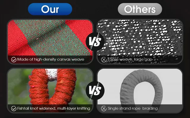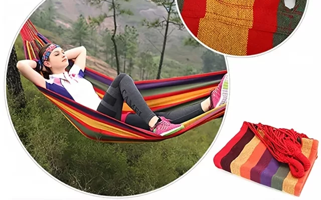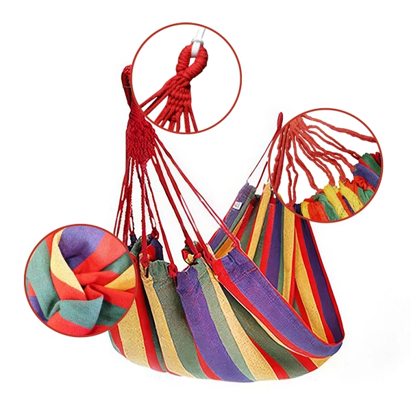 Crafted from high-quality fabric, our hammock can support substantial weight. This ensures your safety and long-lasting use.