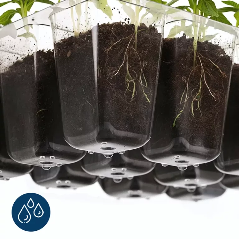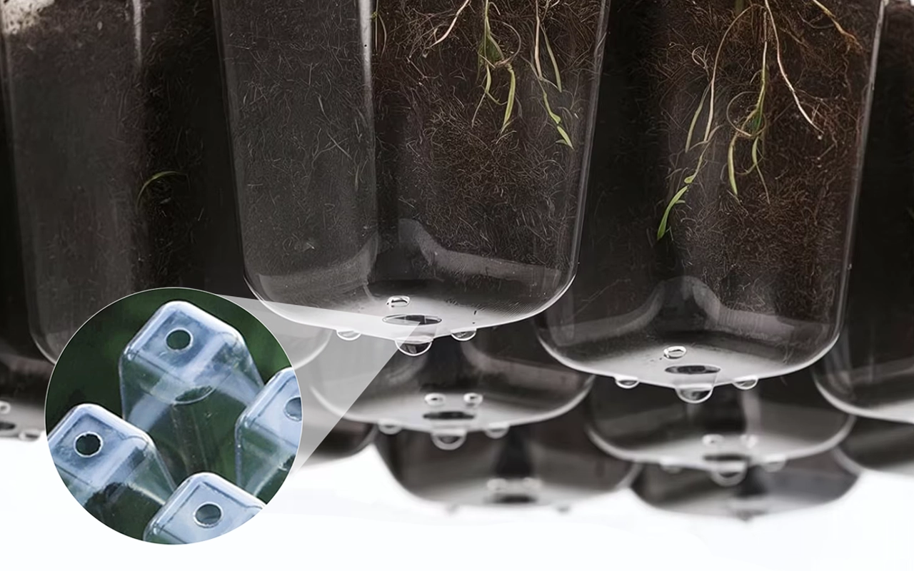 Drain holes stop soggy compost from harming roots. Base trays catch drips, keeping shelves neat.