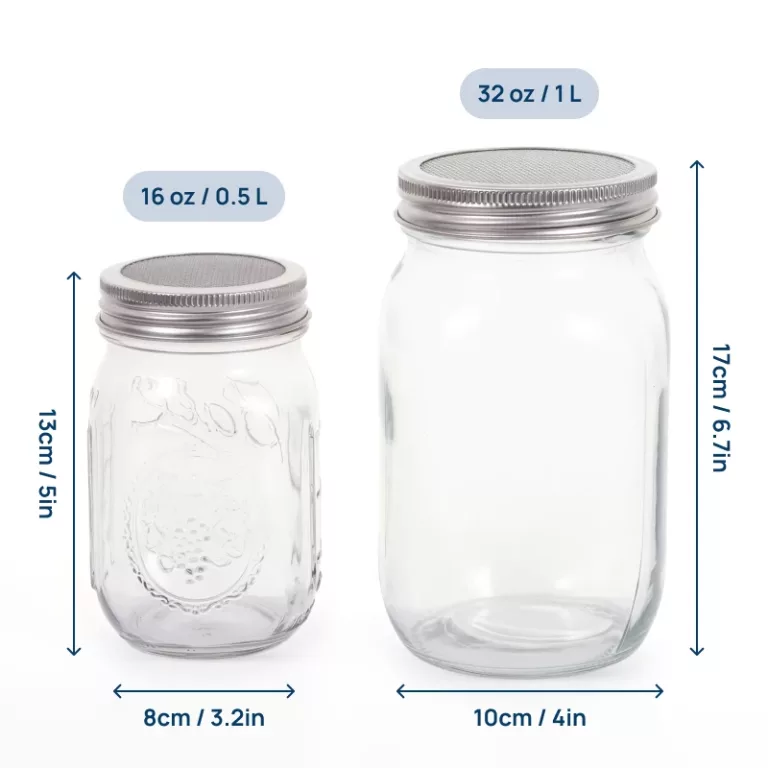 Store dry rice, oats, nuts, and herbs neatly between growing batches. Durable glass plus stainless-steel top replaces the clutter of separate sieve cloths.