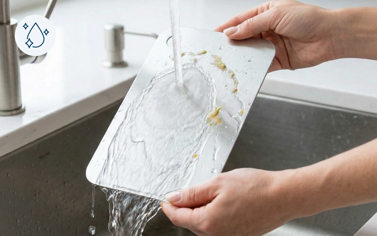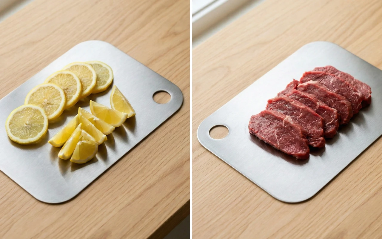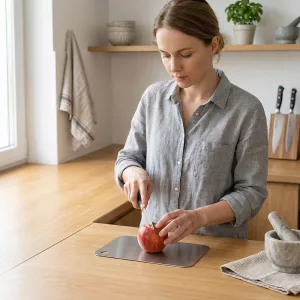 My old wooden board always smelled like garlic. This steel one never holds scent, even after onions and fish. A quick soap rinse and it’s like new again.