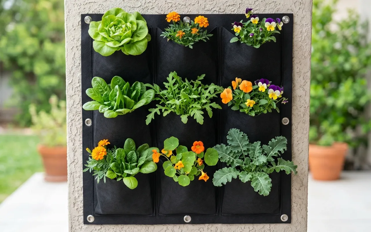 Hung these garden pockets on our tiny balcony and suddenly we have fresh basil, mint, and lettuce right by the kitchen. Everything grows thick and smells wonderful.