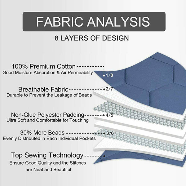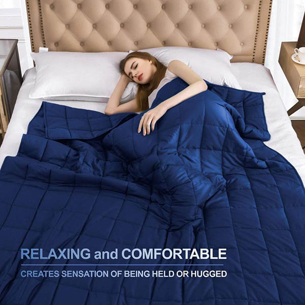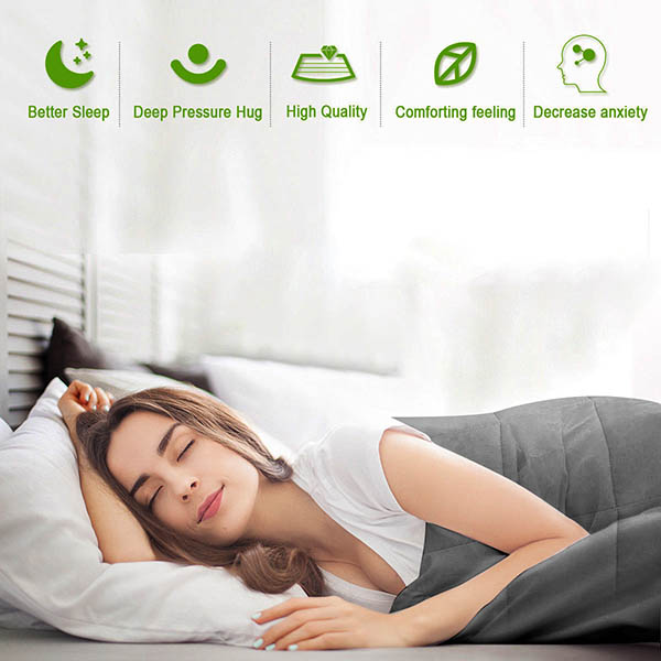 The original weighted blanket offers a natural way to help calm your body for a restful night of sleep. 100% cotton, comfortable and soft to the touch, delicate texture, skin-friendly material — it all helps to decompress and provide comfort.