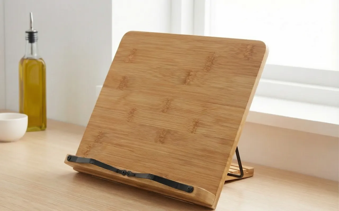 This bamboo stand changed how I cook. It keeps my heavy cookbooks open, and my tablet safe from spills while I bake with my kids.