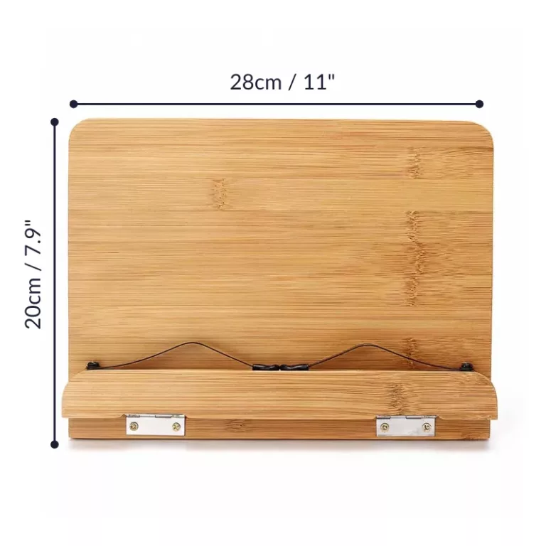 I’m teaching my teen to cook, and this wooden stand keeps her printed recipes clean. Wiping off sauce splashes from the smooth surface is easy.