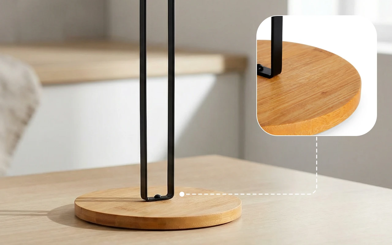 Nygex Paper Towel Holder keeps rolls ready for spills. Grab sheets quickly during cooking, cleaning, or busy mornings. The bamboo base stays steady on damp surfaces. The slim frame saves space and suits modern rooms.