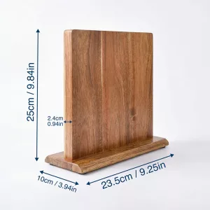 Nygex wooden stand instantly clears crowded drawers and messy worktops. Strong hidden magnets hold blades firmly while edges stay perfectly sharp. Smooth acacia surface resists scratches and simply wipes clean after cooking. Natural grain matches modern kitchens, creating a calm, organised preparation space.