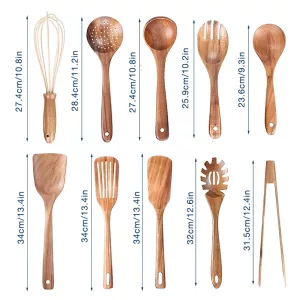 Nygex wooden set keeps cookware smooth and mark-free always. Natural bamboo handles stay cool, so fingers avoid painful burns. Solid teak heads resist stains and odours for fresher-tasting dishes. Simple rinsing plus gentle drying keeps every piece beautifully clean.