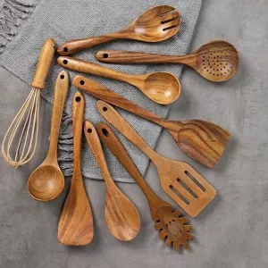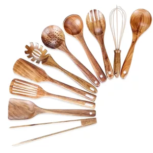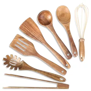 I like that the bamboo and teak feel natural in my kitchen. I’ve noticed my pans stay smooth, and I feel better using these instead of more plastic.