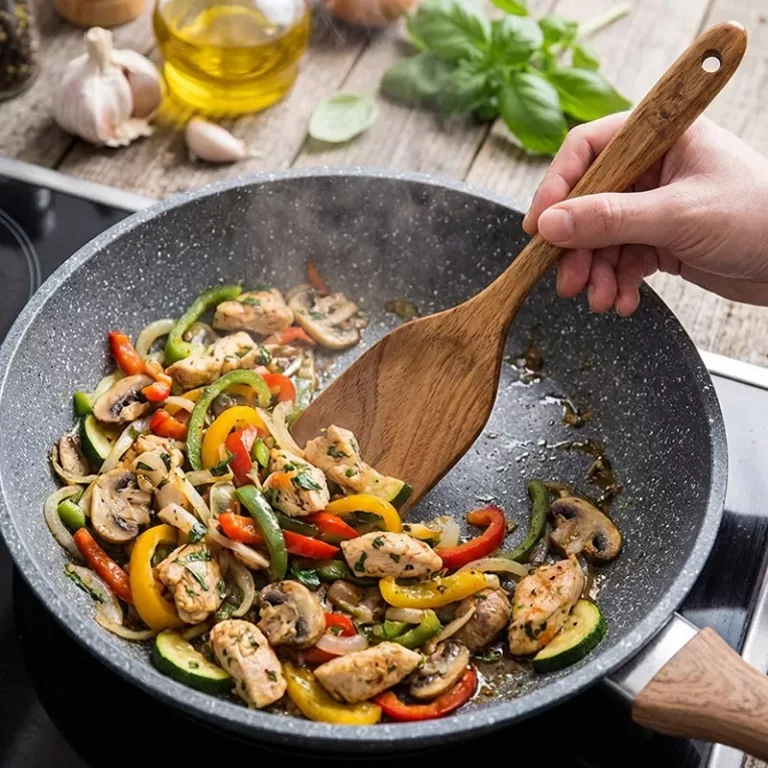 I cook a lot of stir-fries, and these spoons move veggies around the pan easily. The curved edges slide under food without scratching, which keeps my wok in great shape.